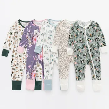 סיטונאי מותאם אישית מודפס תינוק בגדי במבוק סיבי ויסקוזה ספנדקס תינוק Romper רוכסן מעצבי תווית לוגו בוטיק בגדים
